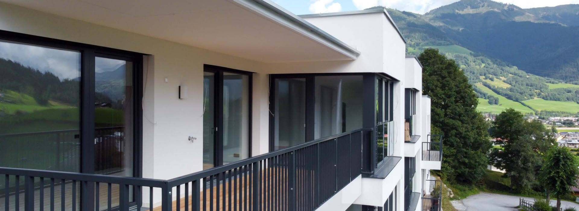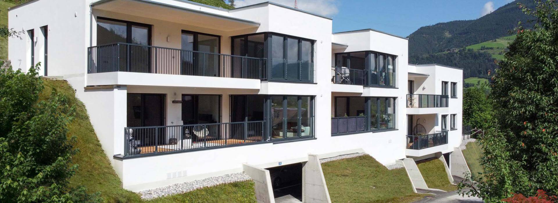 Das Projekt „Bergblick“ mit nur sechs Eigentumswohnungen besticht durch die herrliche Hanglage zwischen Großglockner und Salzachtal. Von den großzügigen Balkonen, Loggien, Terrassen und Gärten genießen Sie von früh bis spät einen traumhaften Ausblick auf die umliegende Bergwelt.