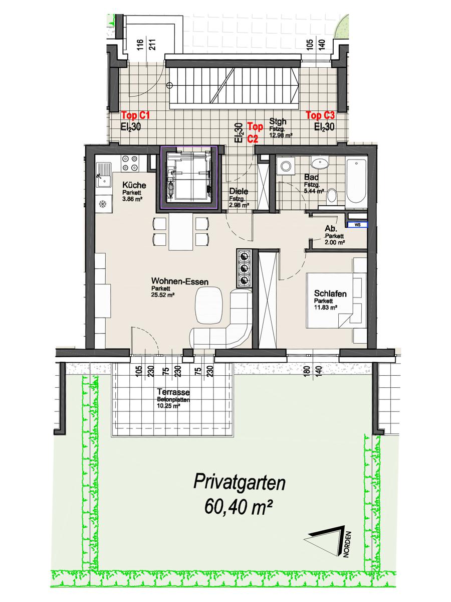 Miete Wohnung C2: € 797,- mtl.