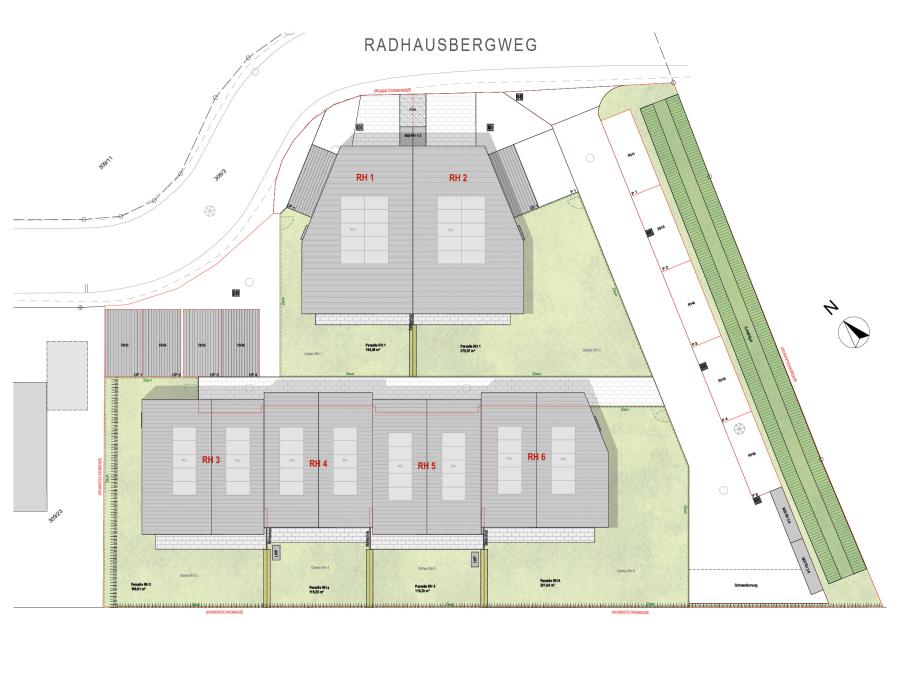 - 2 Doppelhaushälften und 4 Reihenhäuser mit großem Kellerraum, Balkon und je 2 Stellplätzen