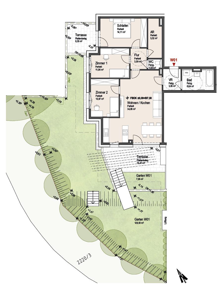 - top Ausstattung: Eichenparkettböden in den Wohn- und Schlafräumen, einzelraumregulierte Fußbodenheizung, moderne Sanitärausstattung, dreifach Isolierverglasung, bedarfsgerechte Wohnraumbelüftung, Video-Sprechanlage, Lift