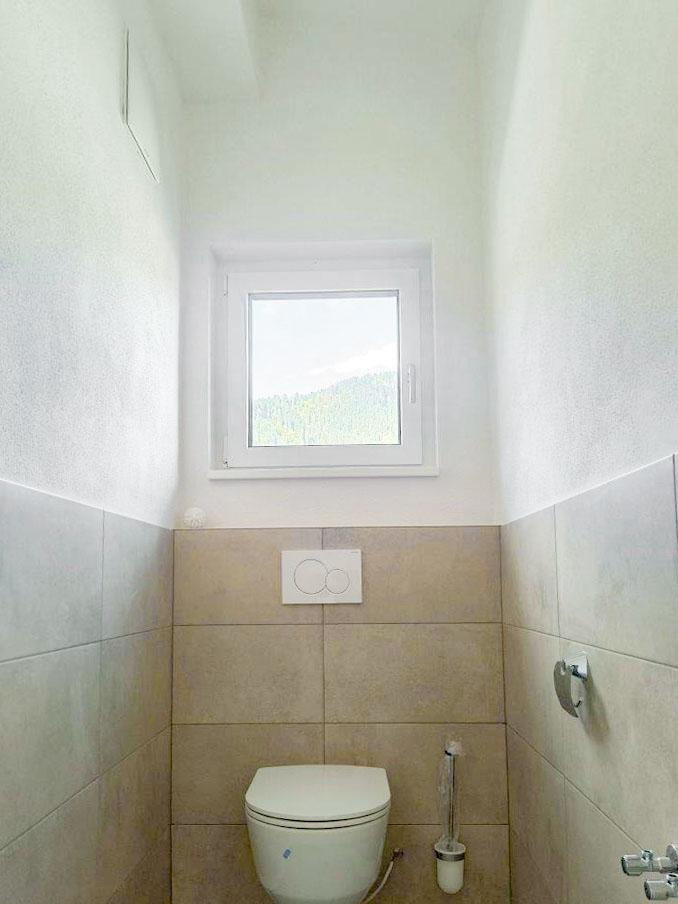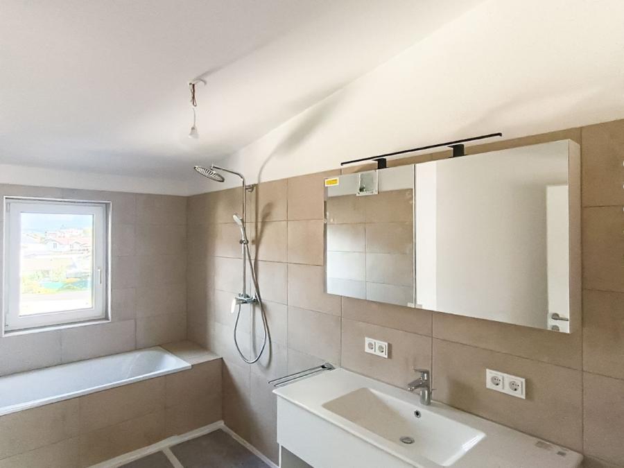 - Badezimmer mit bodengleicher Dusche und Badewanne, WC separat