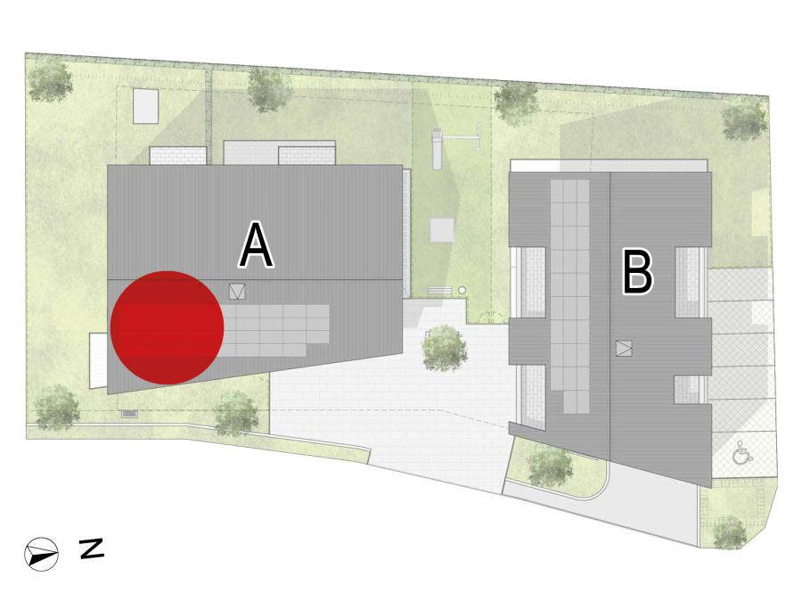 Die massive Bauweise wird von einer nachhaltigen Echtholzfassade geschmückt, deren kontraststarke Farbkombination den Gebäuden einen lebendigen und stilvollen Charakter verleiht. Verbunden mit einer attraktiven Außenanlage entsteht ein familiäres Wohngefühl.
