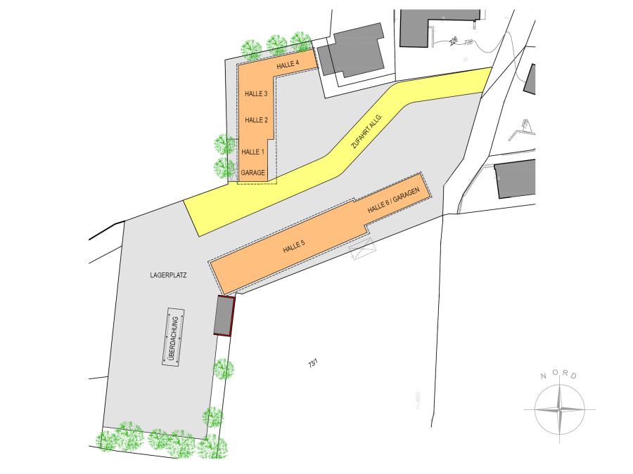 Widmung: 3.383 m² Betriebsgebiet und 1.394 m² Grünland