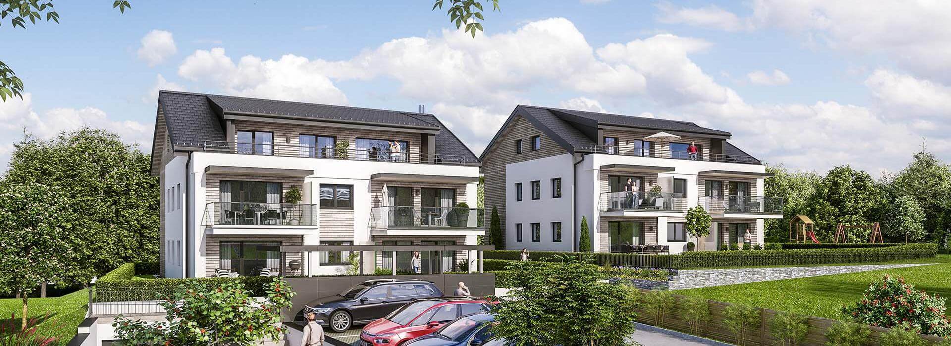 Nach Hause kommen und sich rundum wohlfühlen - das ist der Wohntraum, den wir verwirklichten. Mit nur fünf Wohnungen in jedem Haus bietet sich Ihnen eine familiäre Atmosphäre in idyllischer Lage. Die einzelnen Wohnungen überzeugten durch hochwertige Ausstattung mit ausgewählten Materialien. Große Glaselemente sorgten für tageslichtdurchflutete Räume und ein besonderes Wohlfühlambiente.