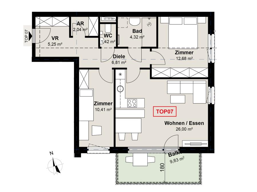 - Miete Top 7 inkl. 1 TG-Platz: € 1.221,- mtl.
