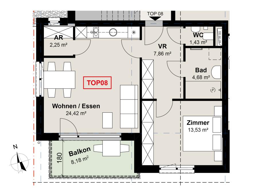 - Miete Top 8 inkl. 1 TG-Platz: € 978,- mtl.