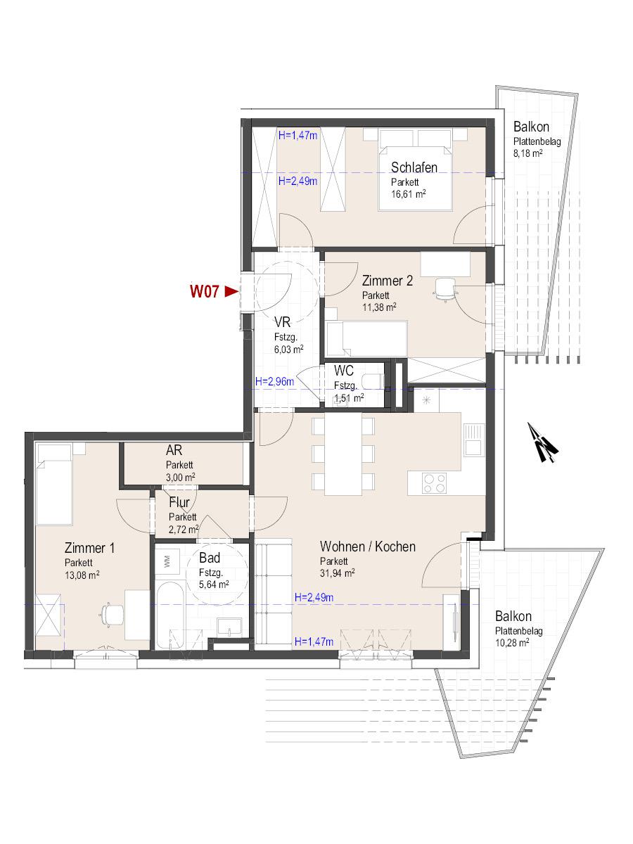 Wohnfläche: 91.91 m²Schlafzimmer: 3