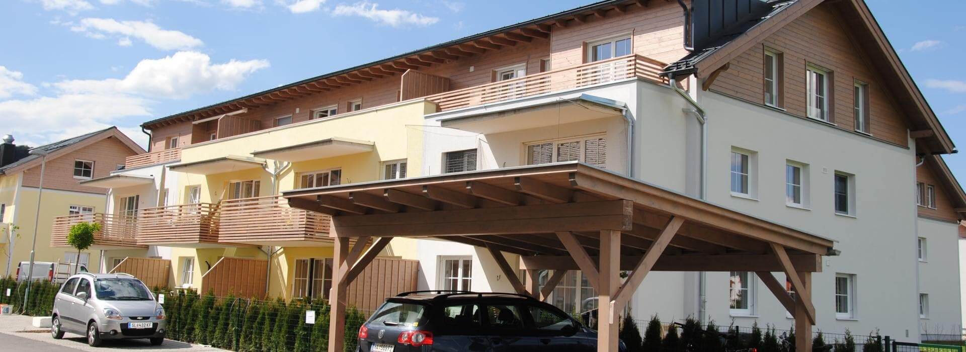 Moderne Eigentumswohnungen und Reihenhäuser mit Komfort. Von 55 bis 110 m² bieten die Wohnungen für jeden Raumbedarf das passende Angebot. Tiefgarage, Pelletsheizung, Lift, große Gärten, Balkon.
