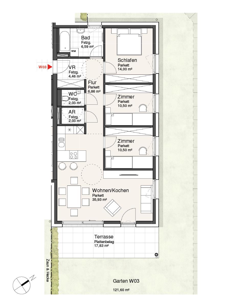 - ca. 121 m² Privatgarten und 17 m² Terrasse