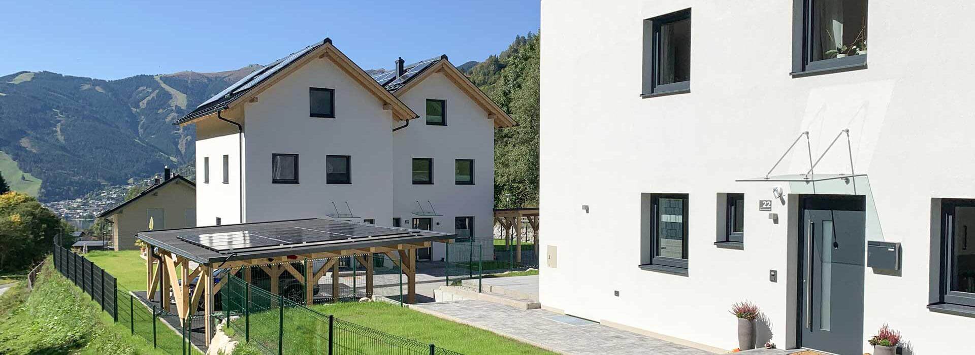 Eingebettet im herrlichen Bergpanorama von Zell am See enstanden zwei komfortable Doppelhäuser mit attraktiven Wohnflächen von 92 Quadratmetern. Die Häuser überzeugen durch hochwertige Ausstattung und sind perfekt auf die Wünsche und Anforderungen von Familien konzipiert. Auf rund 900m Seehöhe blickt man über den Zeller See auf die Schmittenhöhe, und die ruhige und schöne Lage verspricht zu jeder Jahreszeit hohe Wohn- und Lebensqualität.